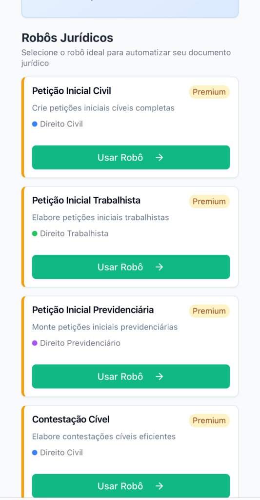 Você pode adquirir os +100 Robôs Jurídicos diretamente clicando no botão de comprar. O processo é simples: escolha seu plano, finalize a compra e pronto — em poucos cliques você terá os Robôs trabalhando dentro do seu ChatGPT. É como contratar uma equipe inteira de estagiários digitais para colocar seu escritório no piloto automático.