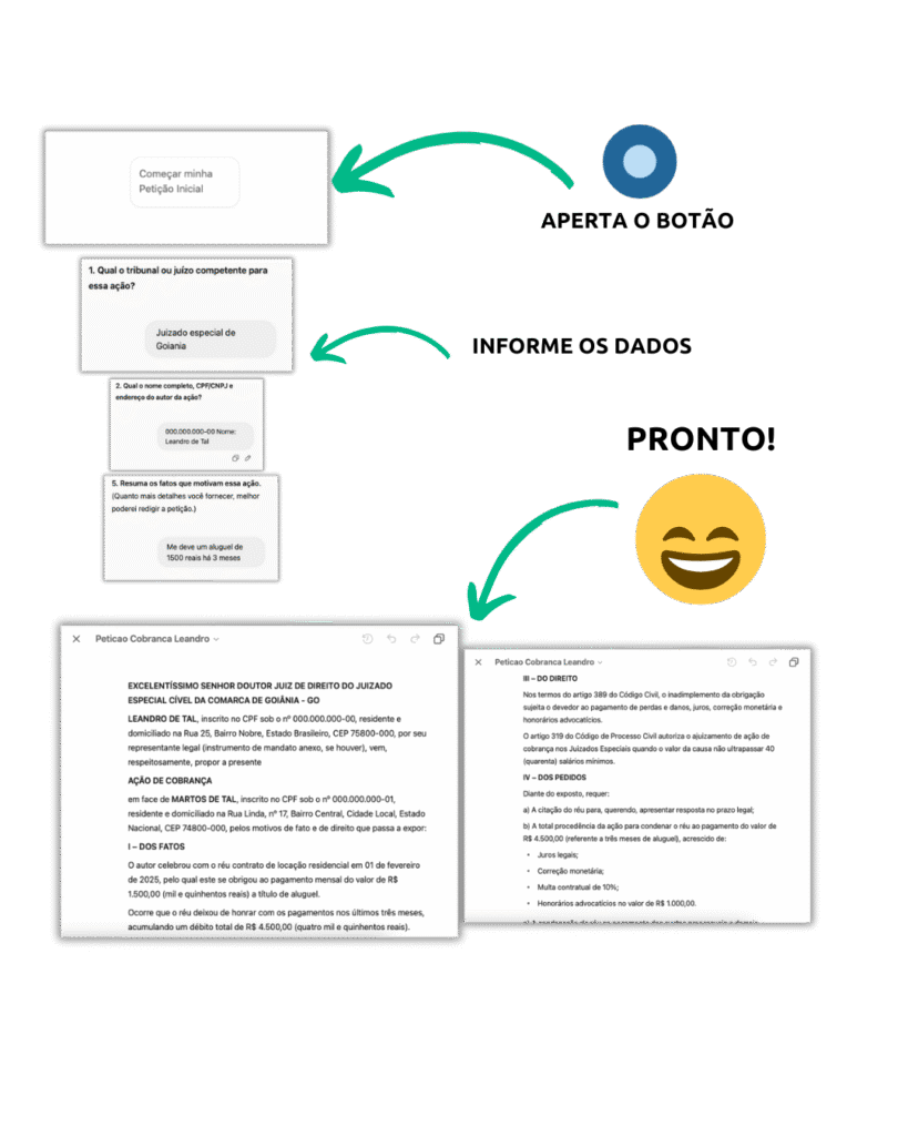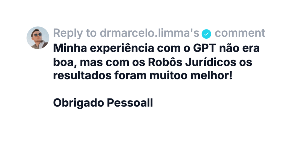 O acesso é liberado imediatamente após a confirmação do pagamento. Ou seja, em poucos minutos você já pode conectar os Robôs ao seu ChatGPT e começar a gerar petições, contratos, recursos e muito mais. Em questão de horas, você já percebe a diferença de ter sua advocacia funcionando quase no automático.