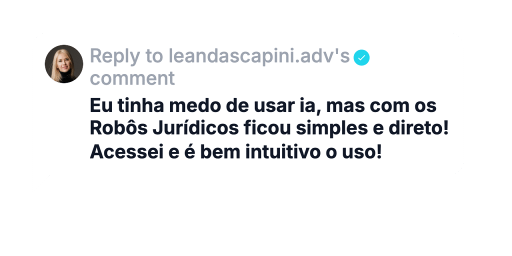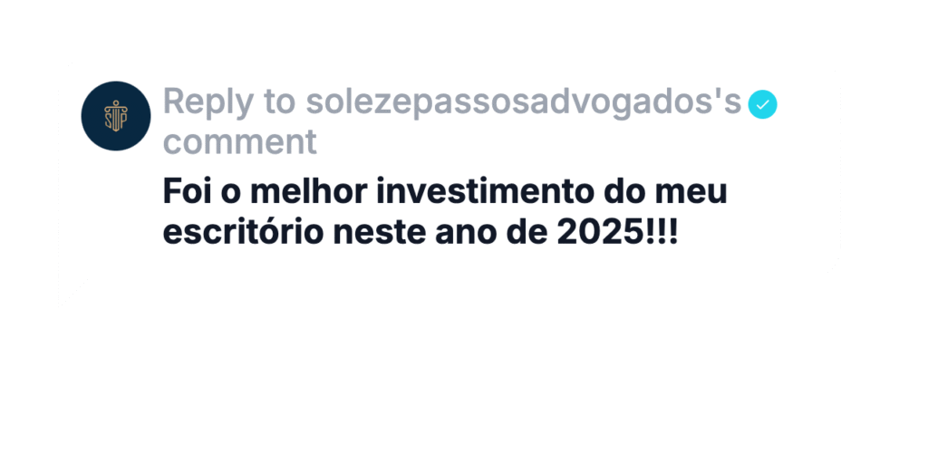 Oferecemos pagamento via cartão de crédito (com parcelamento) e PIX. Queremos que o acesso à automação seja simples e rápido, sem barreiras financeiras. Assim, você pode investir hoje na transformação da sua advocacia e começar a colocar seu escritório no piloto automático sem complicação.